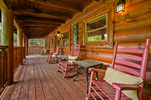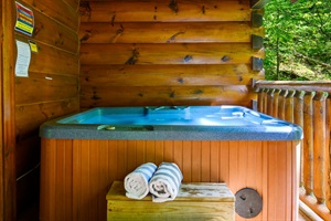 The patio is a perfect setting for meals or just relaxing after a fun filled day exploring the Smoky Mountains. Cook your favorite steak to perfection on the propane grill, chill out on the rocking chairs, or enjoy the evening with your significant other on the porch swing. Make sure to grab a beach towel out of the basket by the door and take a soothing dip in the hot tub while catching up on your shows on the patio TV!